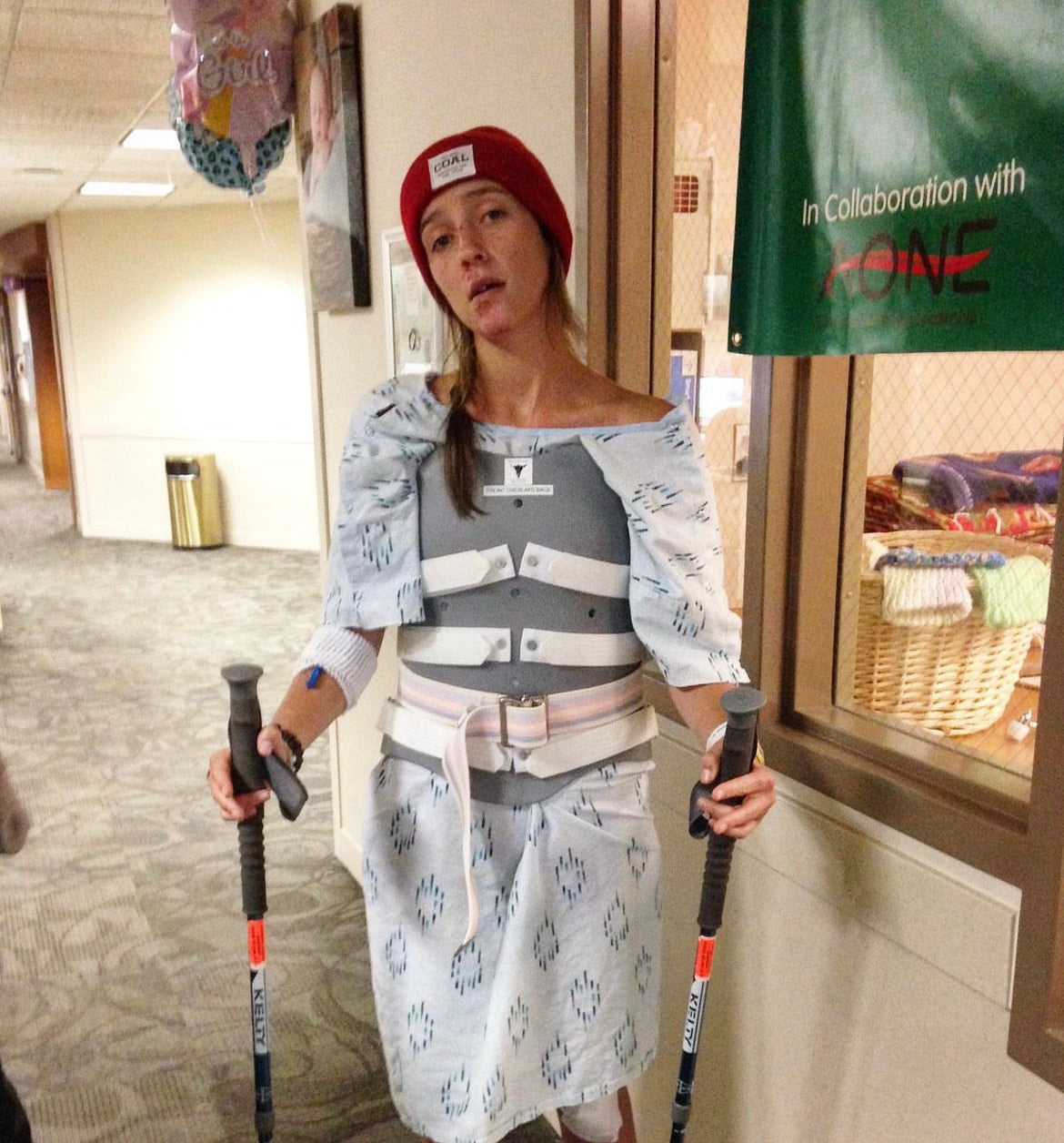Photo 1: Leaving the hospital in a back brace
