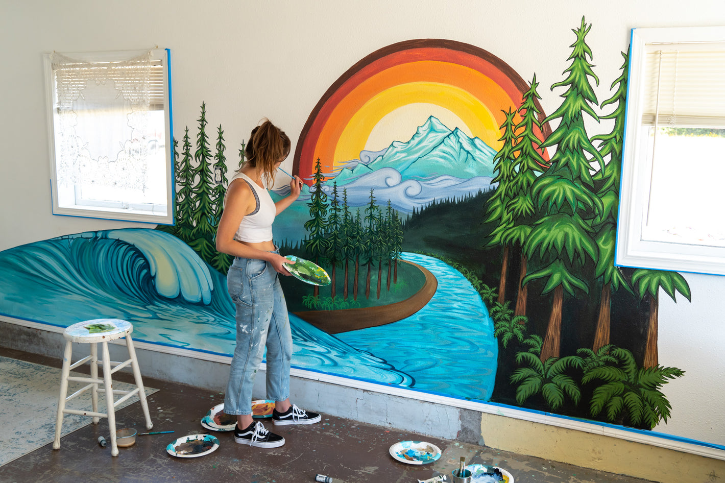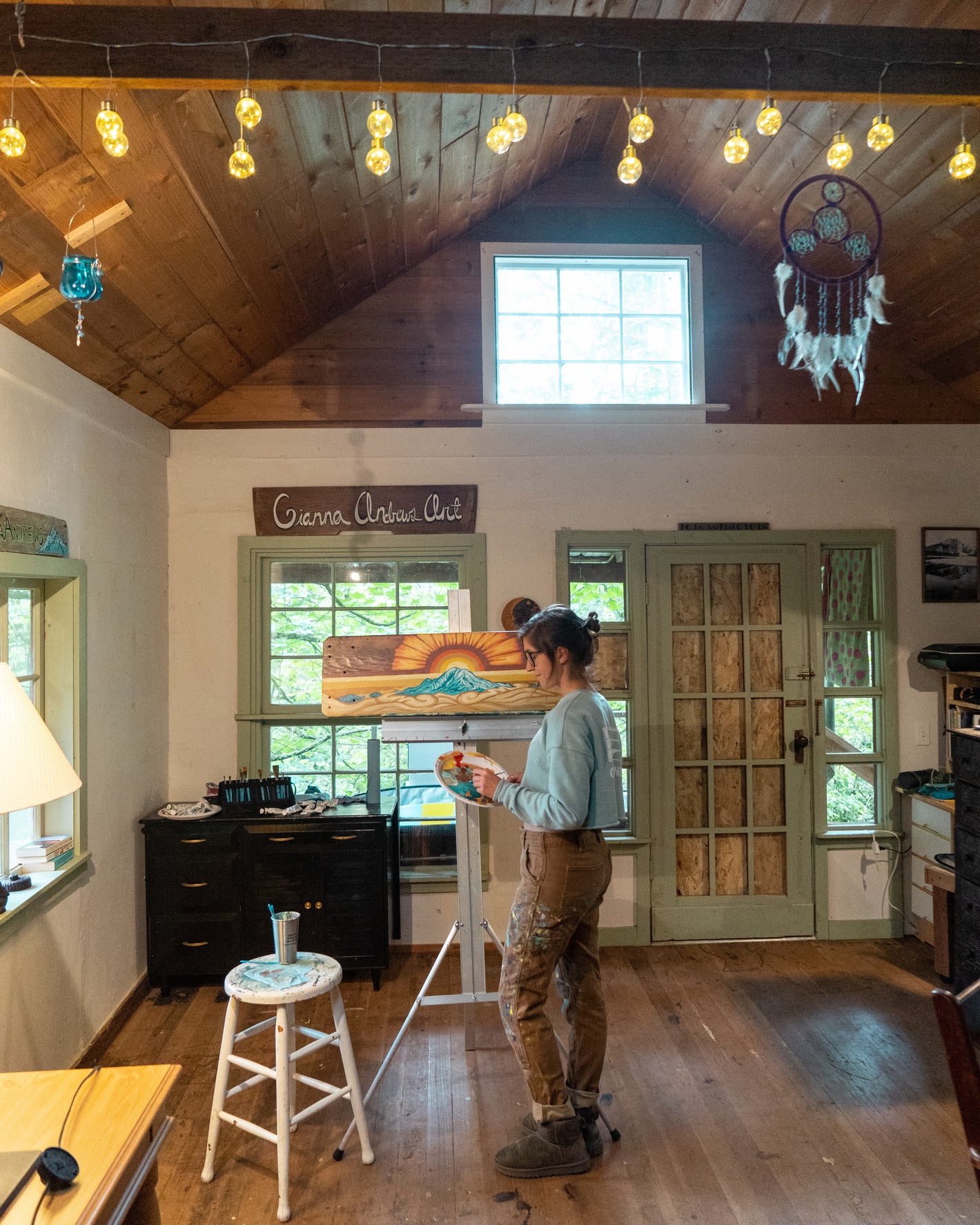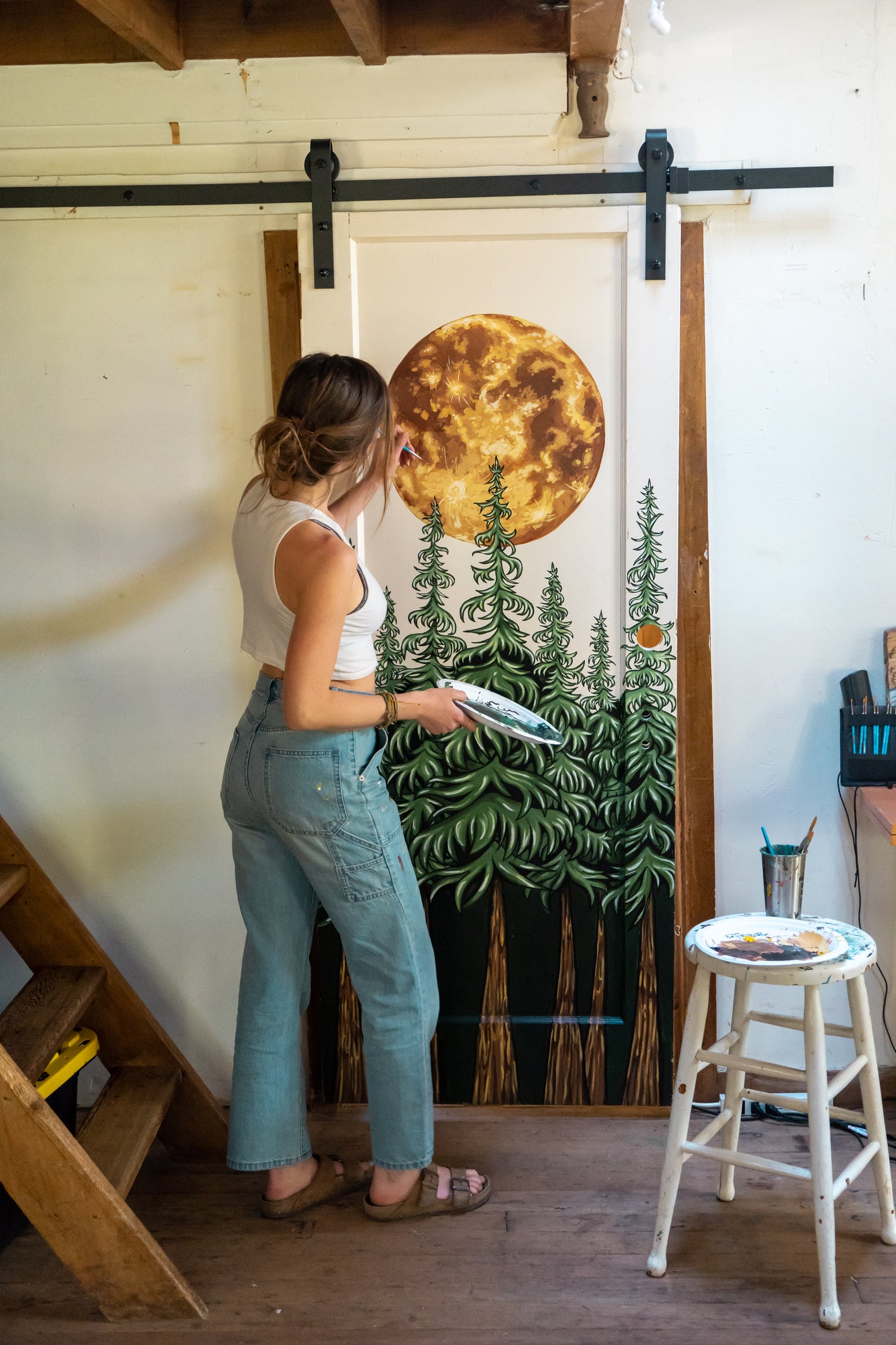 Just as effortlessly as the cabin had flowed into our lives, it bade us a tearful, bittersweet goodbye. Within a couple weeks of searching for a home we found the perfect spot to buy. It was a beachy-feeling fixer-upper on a quarter acre that had a separate outbuilding the same size as our cabin . . . perfect for an art studio. Nestled under the mountains and on a bluff above the sea, we have our first real home base, where we continue to build our careers, surf, and van camp.