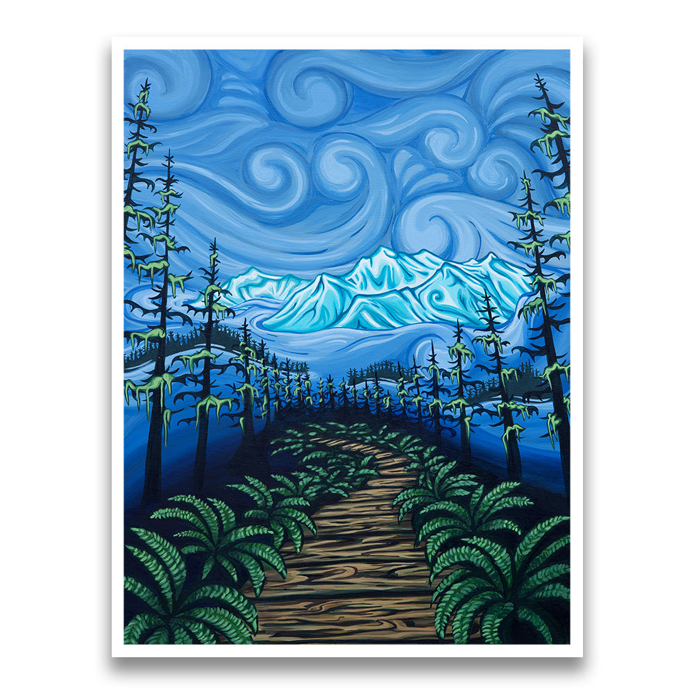 Inspired by walks in misty forest with the Olympic Mountains towering above. Take a walk off the beaten path in this whimsical world.