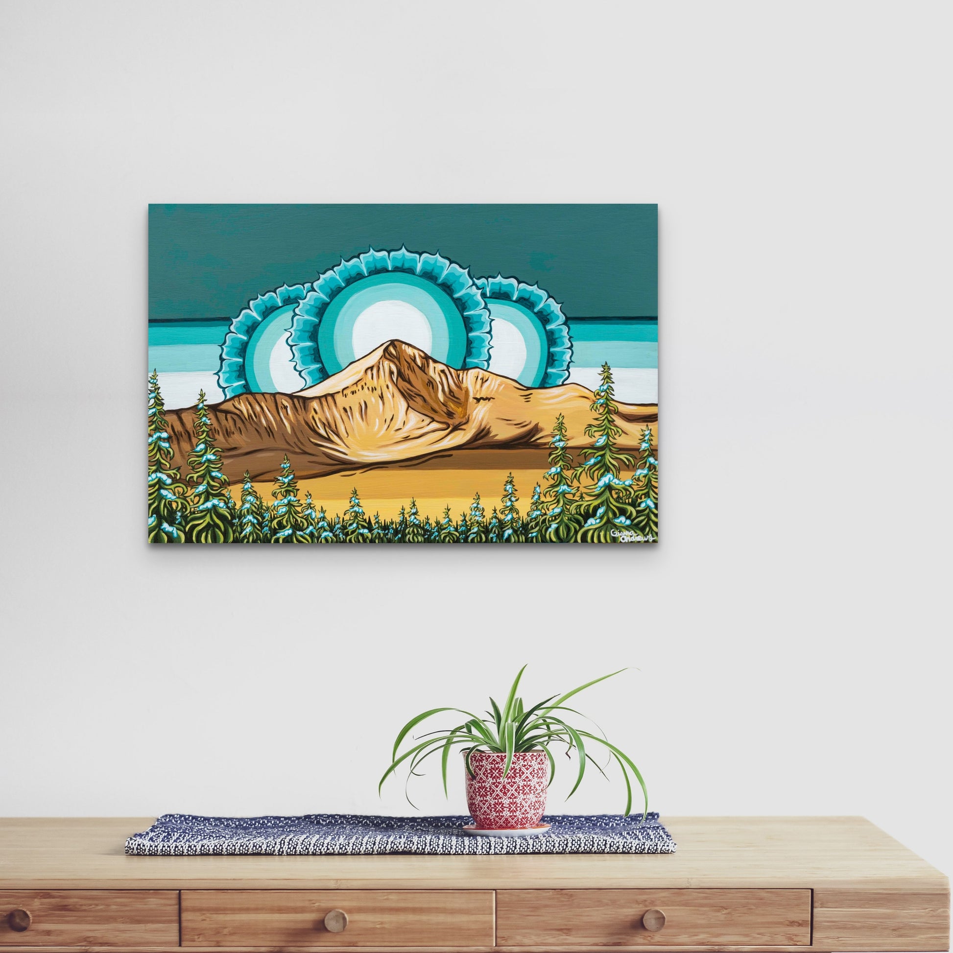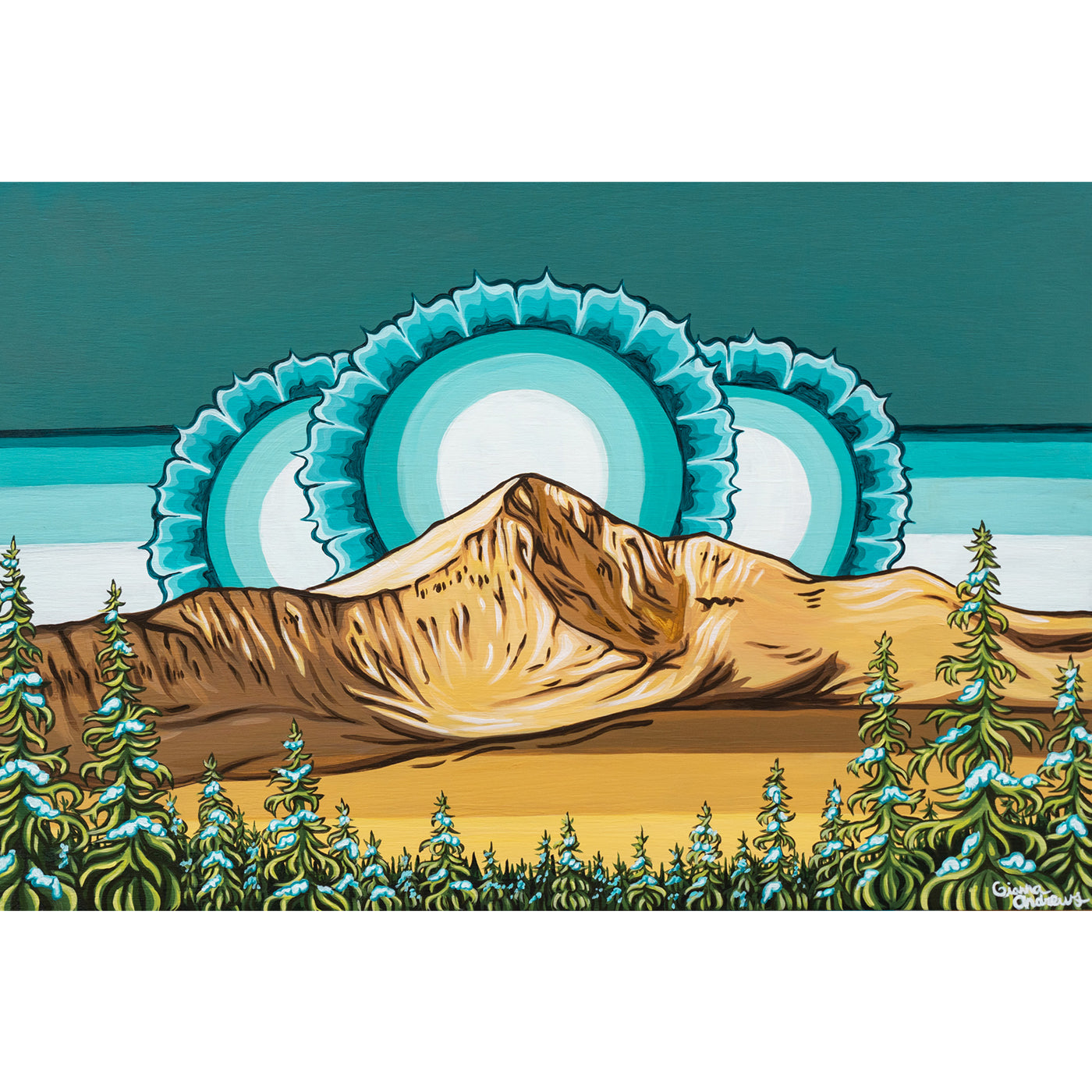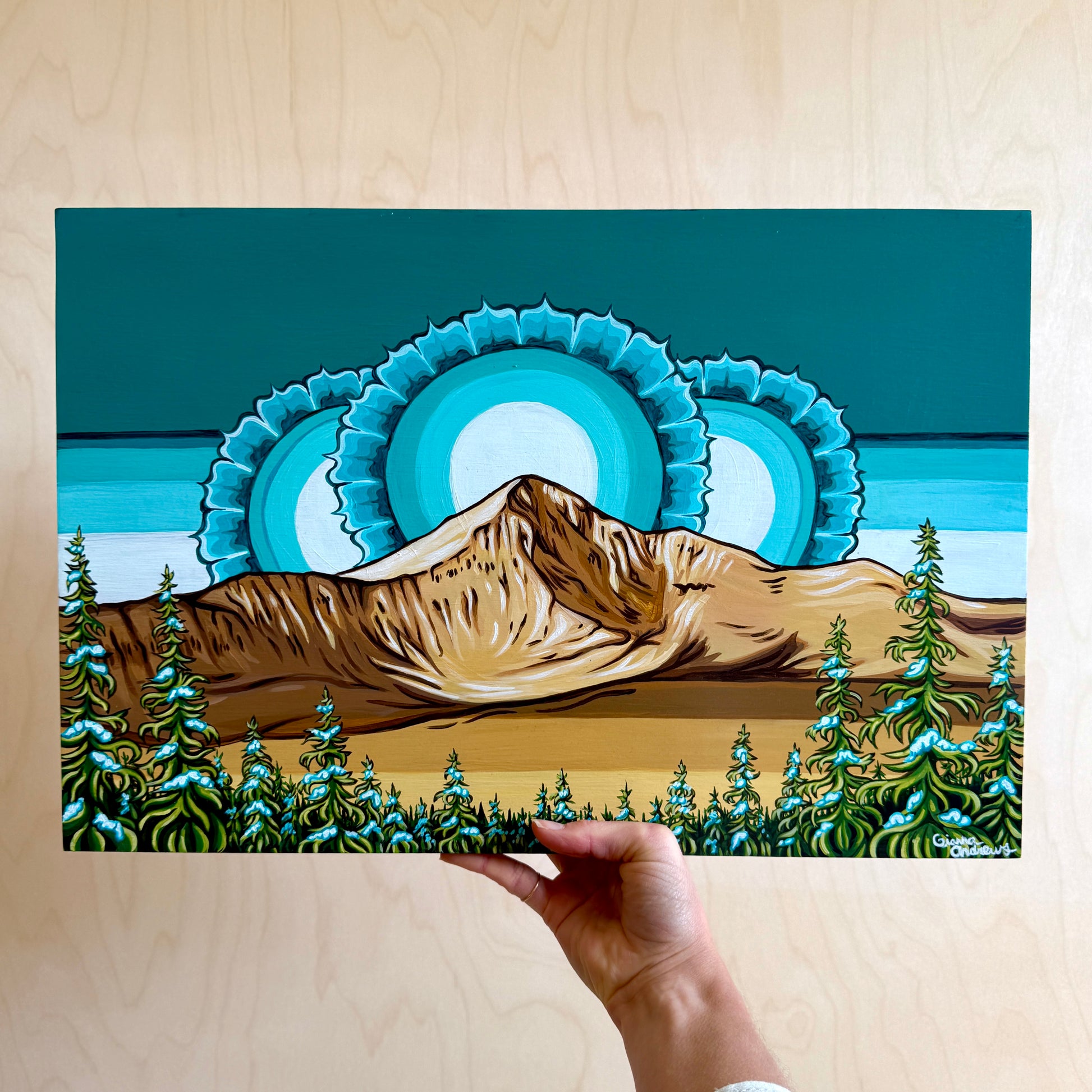 Lone Peak is inspired by ski trips in Big Sky, Montana. I painted the majority of this piece while visiting MT, reflecting on all of the time I spent shredding terrain around Lone Peak.