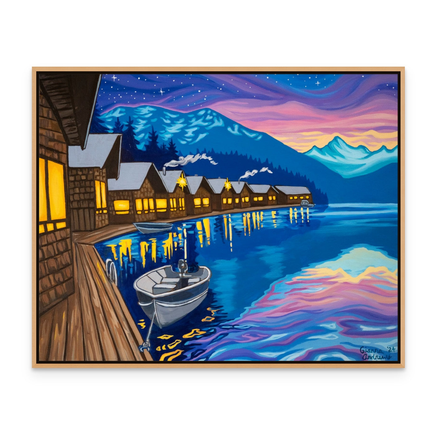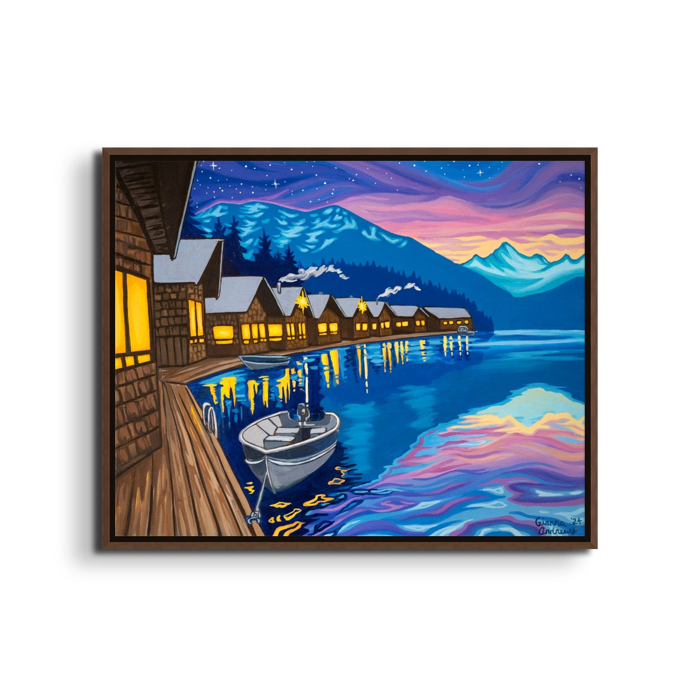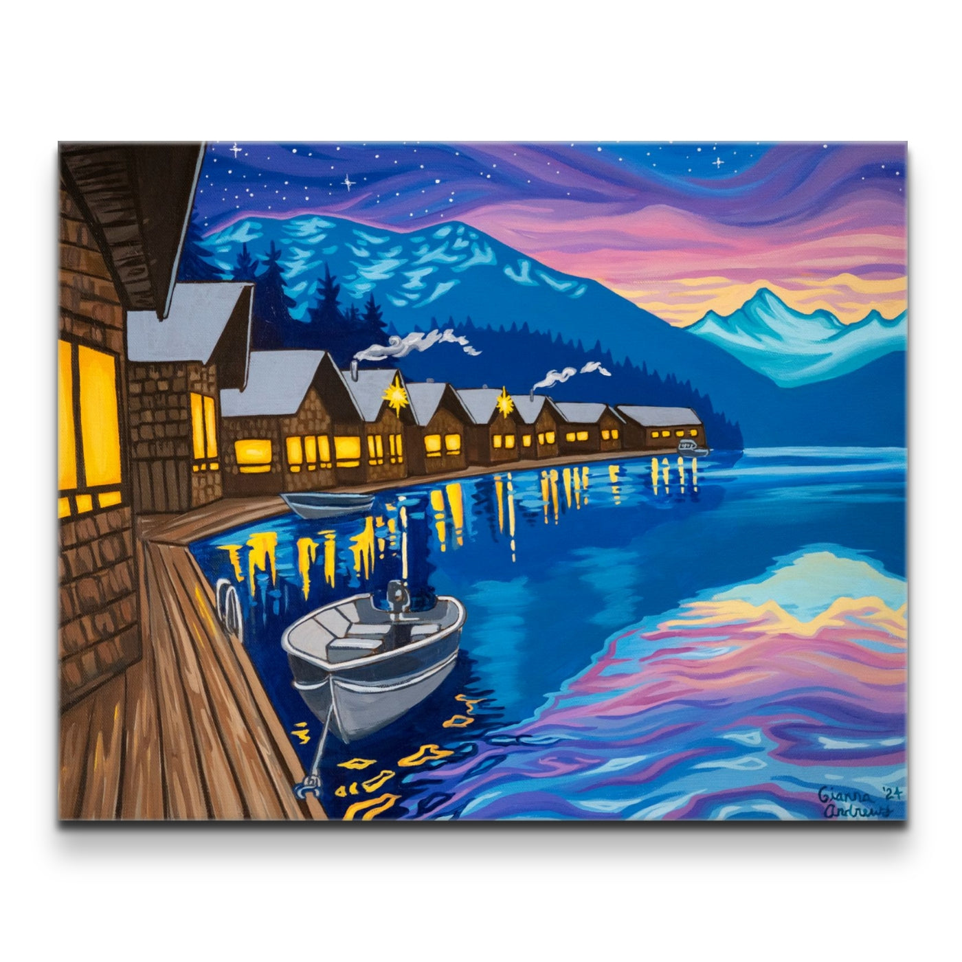 Lake waters whisper you to sleep in your own personal cozy cabin. Mountains tower above. The world is reflected all around you on this unforgettable getaway of a lifetime. Inspired by a magical stay at Ross Lake Resort in Washington State.