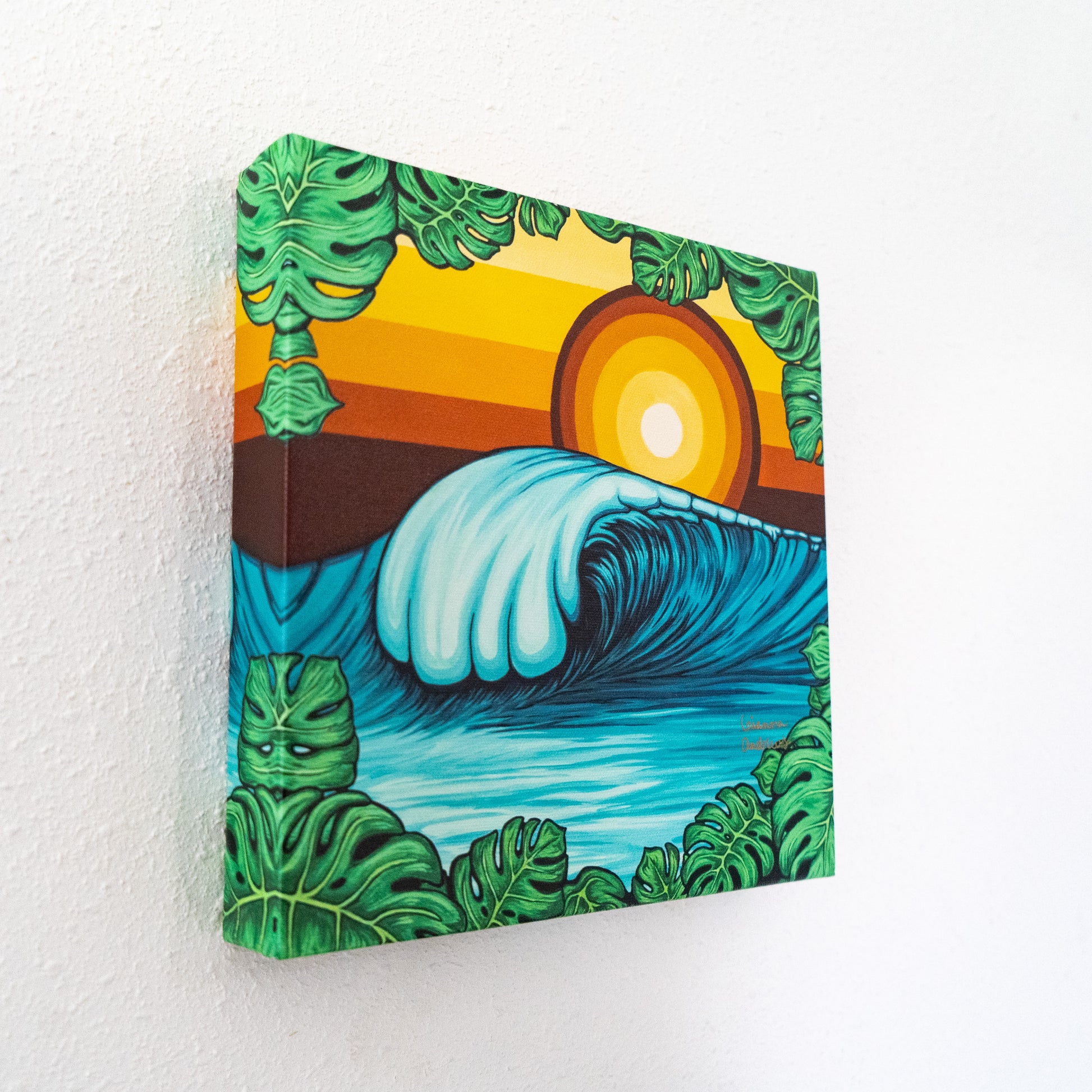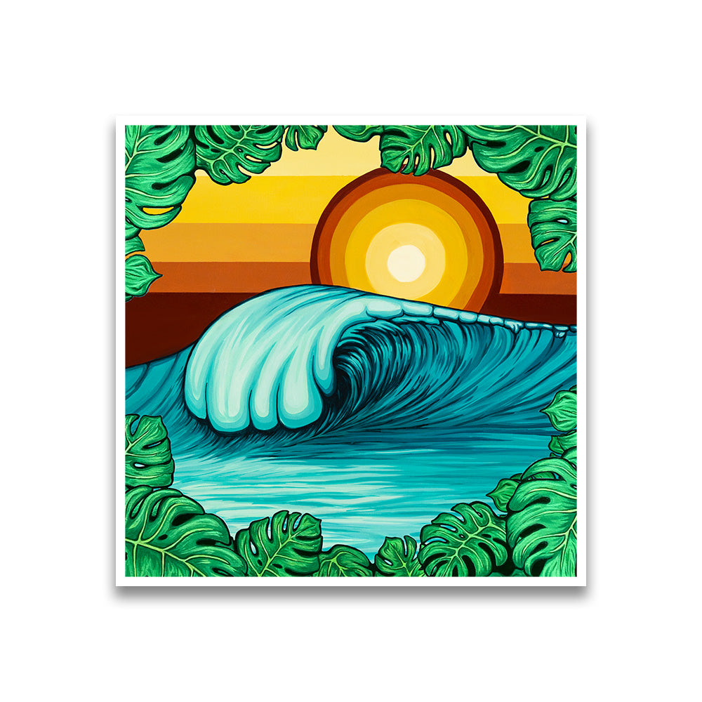 Visions of a retro-striped sky, warm waters, and vibrant monstera leaves. Time for a tropical vacay?!